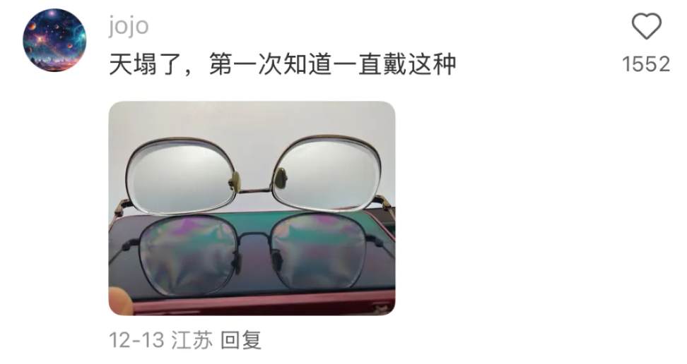 网上所谓的 “镜片质量检测方法”,是说“如果把手机放到平板上,然后再放在电脑屏幕前,或者透过偏光太阳镜、简易偏光片去观察镜片,要是发现本来透明的镜片上出现了从边缘扩散发出的彩虹纹路,就说明这个镜片内部应力不均、光学性能差,不仅看东西容易变形模糊,长期佩戴还可能伤眼睛!”