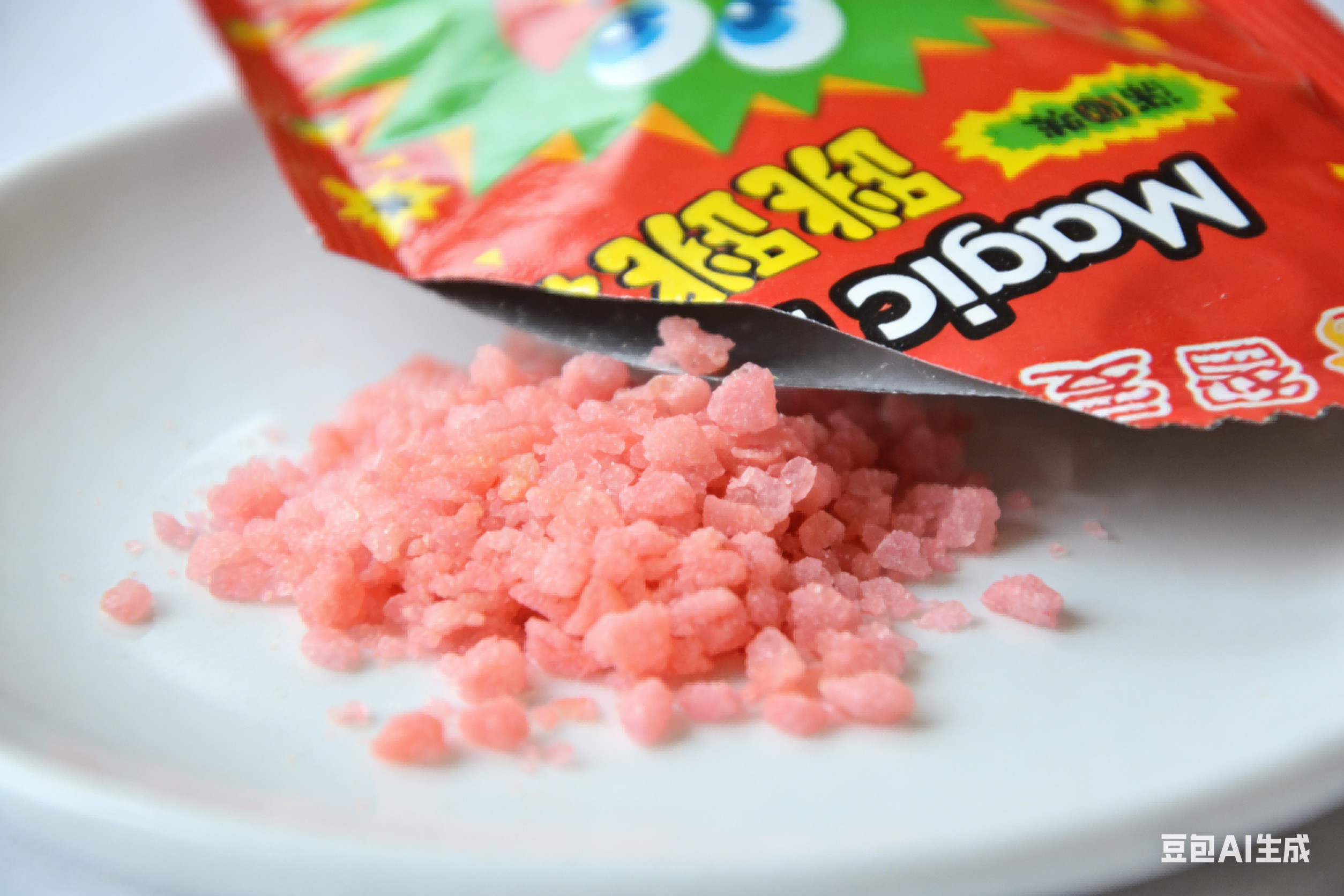 而爆炸果汽糖就是包藏了二氧化碳气体的糖块,外面再裹上一层酸味物质(通常是苹果酸、柠檬酸等果酸)。所以,糖果的口感就是先酸爽,再蹦跳,从而提供丰富的味觉体验。