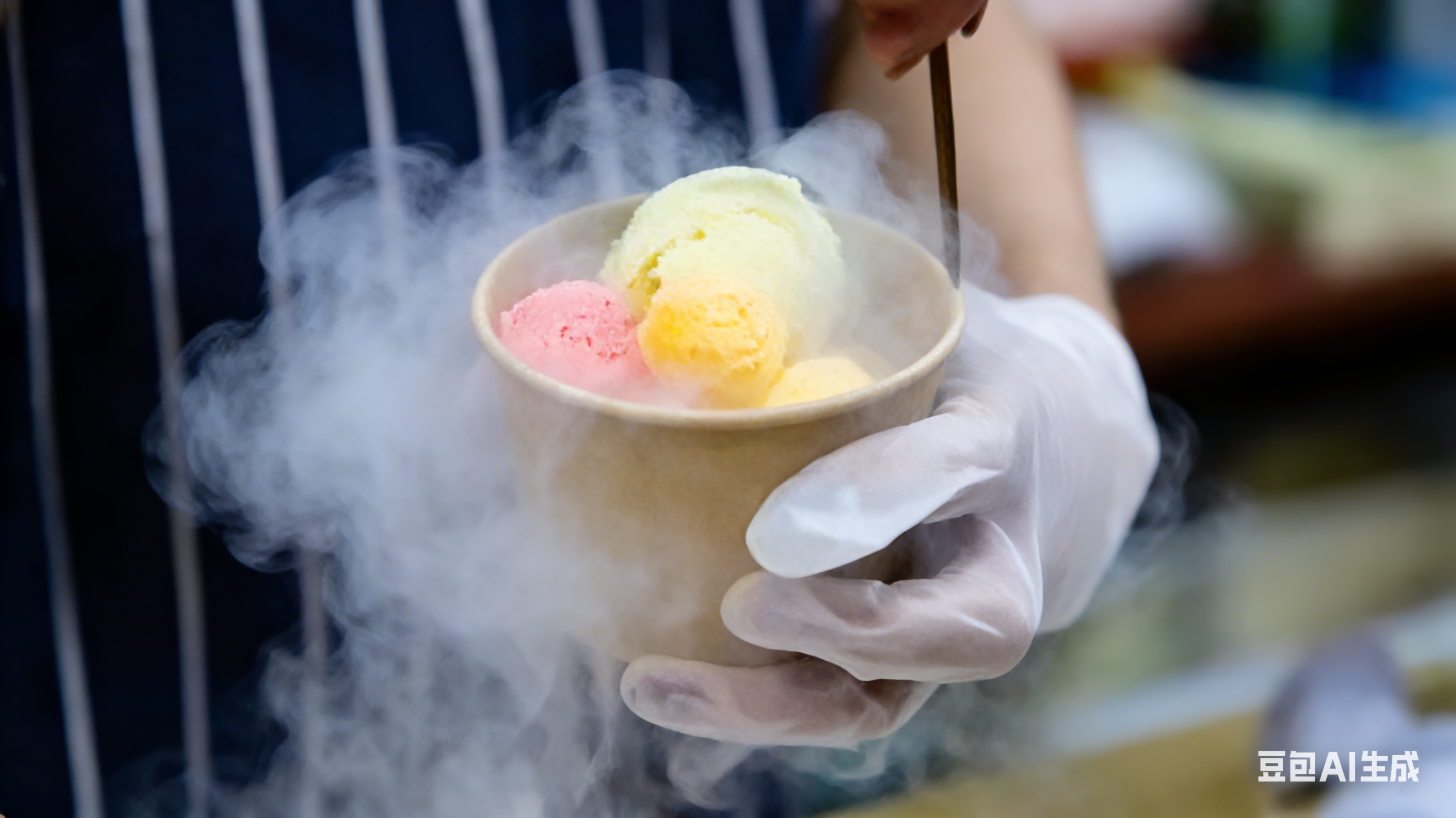 原理:将少许液氮倒在食品上,它会在室温下迅速蒸发而变成气态。这一过程中,周围的空气被冷却,空气中的水蒸气凝结成小液滴,形成了看似白烟的现象。这与冬天我们呼出的气息在冷空气中形成白气是一个道理。
