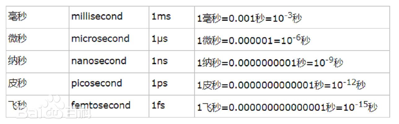 1微秒 = 1000纳秒